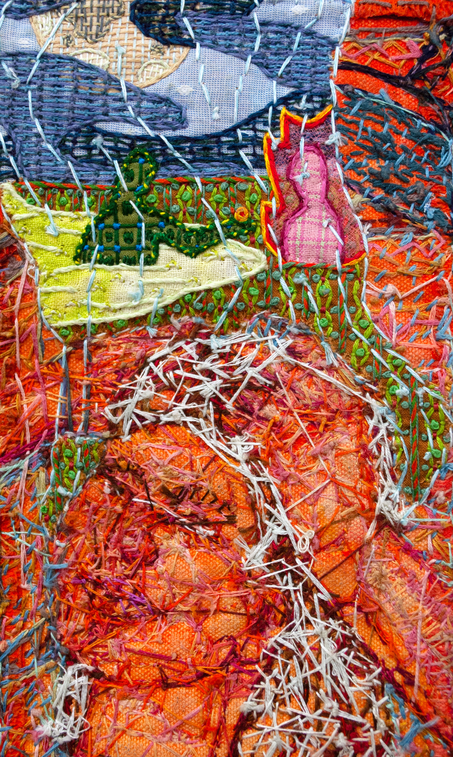 Embroidery Floss, Fabric and Fluid Acrylic on Canvas, 13.5” x 15”, 2025