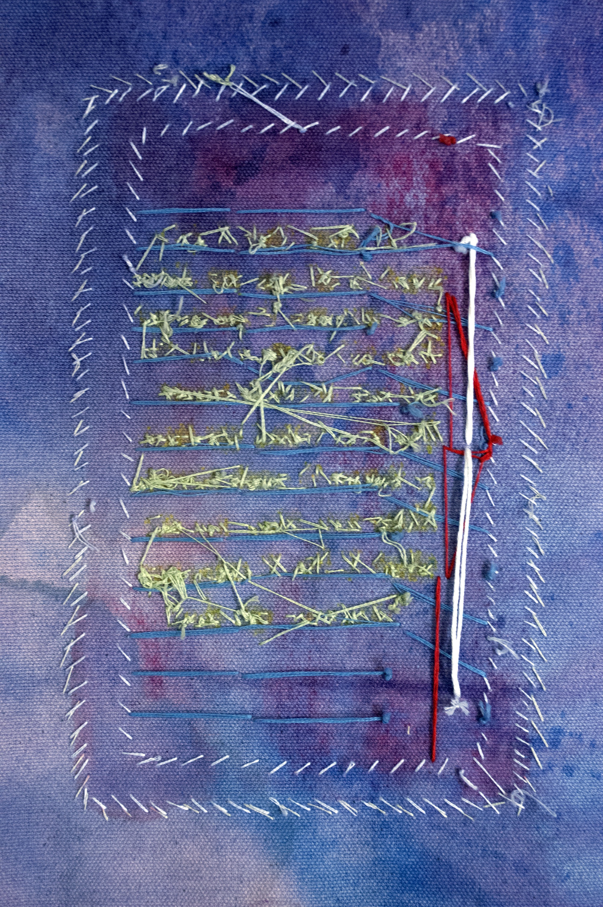 Embroidery Floss, Fabric and Fluid Acrylic on Canvas, 32.5” x 36.5”, 2020